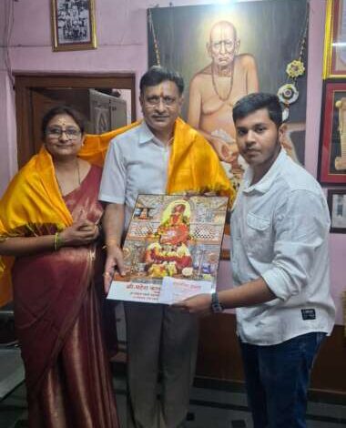फोटो ओळ – न्यायमूर्ती अनिल किलोर व त्यांच्या सुविद्य पत्नी यांचा देवस्थान कार्यालयात सत्कार करताना प्रथमेश इंगळे दिसत आहेत.