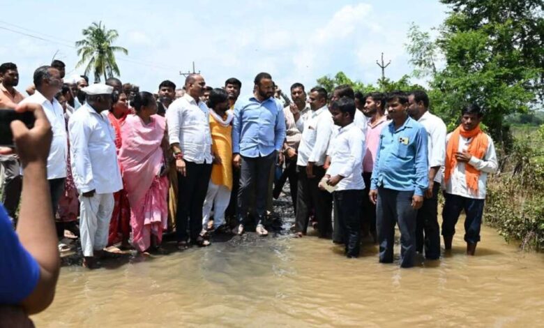 प्रारंभी पालकमंत्री जयकुमार गोरे यांनी दक्षिण सोलापूर तालुक्यातील हत्तुर येथील पाण्याने वाहून गेलेल्या रस्त्याची पाहणी केली. तसेच जिल्हाधिकारी आशीर्वाद यांनी जिल्ह्यात झालेल्या अतिवृष्टीच्या अनुषंगाने माहिती देऊन दक्षिण सोलापूर व अक्कलकोट तालुक्यात झालेल्या शेती पिकांचे रस्त्यांचे व अन्य बाबींच्या नुकसानीची माहिती पालकमंत्री महोदय यांना दिली.