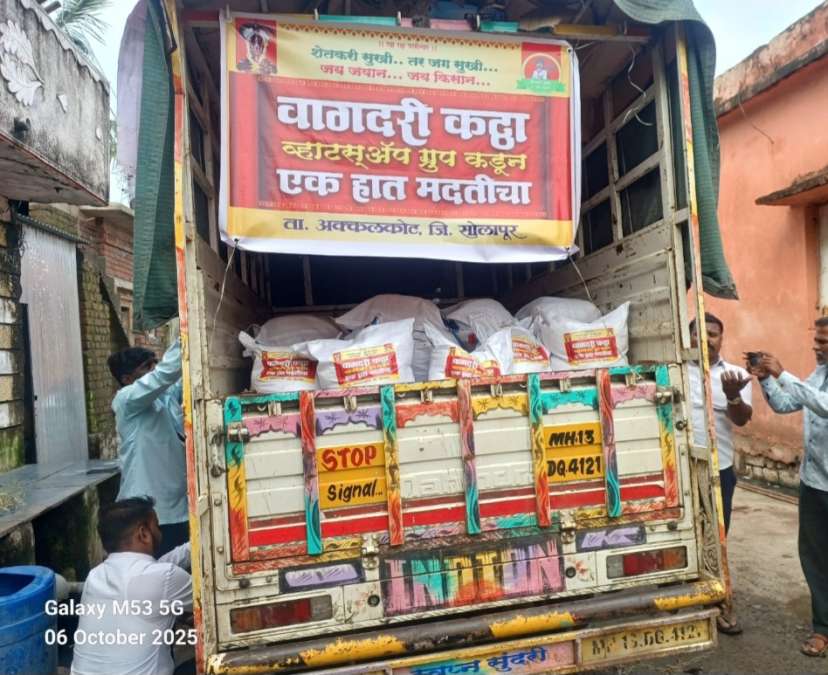 नुकत्याच झालेल्या अतिवृष्टीमुळे आणि पूरस्थितीमुळे अक्कलकोट तालुक्यातील अनेक शेतकरी आणि नागरिकांचे मोठे नुकसान झाले. या संकटसमयी “वागदरी कट्टा” ग्रुपने मदतीचा हात पुढे करत आपुलकीचा सुंदर संदेश दिला. ग्रुपच्या आवाहनाला उत्स्फूर्त प्रतिसाद मिळत गावकऱ्यांनी मिळून तब्बल एक लाख बेचाळीस हजार रुपये जमा केले. या निधीतून गरजूंना जीवनावश्यक वस्तूंचे किट तयार करून अक्कलकोट तहसीलदार कार्यालयात सूपूर्द करण्यात आले.