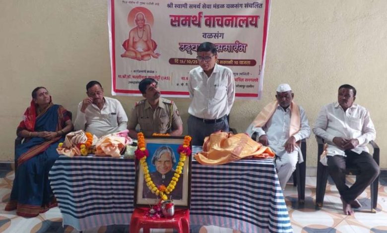 वळसंग – वळसंग तालुका दक्षिण सोलापूर येथे समर्थ वाचनालयाच्या उद्घाटन प्रसंगी केले.येथे स्वामी समर्थ सेवा मंडळाच्या वतीने सर्वांसाठी खुले व सार्वजनिक वाचनालय सुरू करण्यात आले. वाचक प्रेमींनी या वाचनालयातील पुस्तके स्वतःच स्वतःच्या हाताने घ्यावीत व वाचून झाल्यावर योग्य ठिकाणी ठेवावीत अशी सूचना ही यावेळी करण्यात आली. माजी राष्ट्रपती डॉ.एपीजे अब्दुल कलाम यांच्या जयंतीनिमित्त वाचनालयाचे उद्घाटन माजी पंचायत समिती सदस्य सोनूताई कलशेट्टी यांच्या हस्ते करण्यात आले.यावेळी वळसंग पोलीस स्टेशनचे नुतन प्रभारी अधिकारी राहुल डोंगरे यांचेही स्वागत स्वामी समर्थ सेवा मंडळ, सिद्धेश्वर देवस्थान ट्रस्ट व गुरुमंतेश्वर मठ यांच्या वतीने करण्यात आले. डॉ. मल्लिनाथ कलशेट्टी यांचे मी विकासयात्री हे आत्मचरित्र सहाय्यक पोलीस निरीक्षक डोंगरे यांना भेट देण्यात आले.