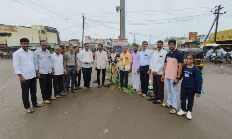 मुरूम येथे श्री जगन्नाथ गोशाळेत उमरगा तालुक्यातील मौजे औराद येथील श्री.यादव विश्वंभर सूर्यवंशी यांनी आपली देशी गोवंश गोमाता श्री जगन्नाथ गोशाळेला देणगी म्हणून आणून दिली,या गोमातेचे मुरूम येथे आगमन होताच हलगी या गजरात श्री छत्रपती शिवाजी महाराज चौक ते श्री जगन्नाथ गोशाळा पर्यंत ढोल ,हलगी च्या गजरात या गोमातेचे संपूर्ण मुरूम मधून मिरवणूक काढत गोमातेचे स्वागत,पूजन व औक्षण करण्यात आले सर्वप्रथम श्री छत्रपती शिवाजी महाराज चौक येथे रोटरी क्लब मुरूम च्यावतीने गोमातेचे पूजन करण्यात आले,यावेळी रोटरीचे अध्यक्ष अप्पासाहेब सूर्यवंशी,मल्लिनाथ बडोले,डॉ नितीन डागा,डॉ.सुधीर पंचगल्ले,सुनील राठोड,संतोष कांबळे,वाकडे सर,कल्लाप्पा पाटील,भूषण पाताळे,आदी उपस्थितीत होते,तसेच यावेळी श्री जगन्नाथ गोशाळाला गोमाता देणगी म्हणून देणारे श्री यादव विश्वंभर सूर्यवंशी यांचेही स्वागत करण्यात आले,लुटे किराणा येथे गोमाता चे आगमन होताच लुटे किराणा च्यावतीने गोमातेचे पूजन करण्यात आले,महात्मा बसवेश्वर चौक येथे अंबर हार्डवेअरच्या वतीने मंथन अंबर यांनी गोमातेचे पूजन केले तसेच सिद्याप्पा मठ येते साई किरण,मेडिकल व मुदकन्ना परिवाराच्या वतीने गोमातेचे पूजन औक्षण करण्यात आले.शेवटी श्री जगन्नाथ गोशाळा येथे सौ क्रांती सूर्यवंशी यांच्या हस्ते गोमातेचे पूजन करण्यात आले या वेळी श्री जगन्नाथ गोशाळा चे निर्मलकुमार लिमये, सूरज राजपूत ,रौनक शर्मा, प्रकाश सूर्यवंशी हजर होते.