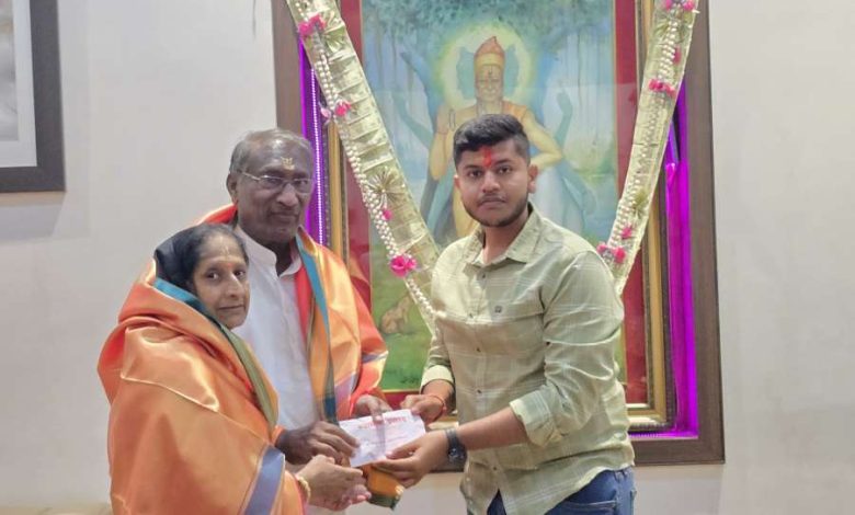 फोटो ओळ – मा.आ.राजन पाटील व त्यांच्या सुविद्य पत्नी कमलताई पाटील यांचा सत्कार करताना प्रथमेश इंगळे दिसत आहेत.