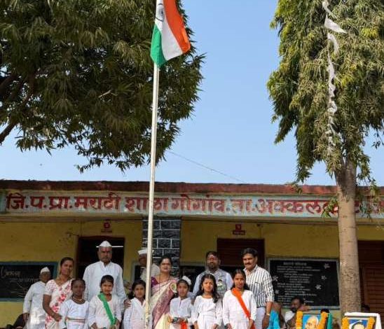 अक्कलकोट तालुक्यातील गोगांव येथील ग्रामपंचायत कार्यालया समोर सरपंच सौ वनिता सुरवसे यांच्या हस्ते ध्वजारोहण करण्यात आले कार्यक्रमाच्या अध्यक्ष स्थानी ग्रा. प.सदस्य श्री लक्ष्मण बिराजदार हे होते, प्रमुख उपस्थितीत उपसरपंच कमलाकर सोनकांबळे, प्रदीप जगताप, शरणप्पा कलशेट्टी, ग्रामपंचायत अधिकारी विक्रम घाटे यासह गावातील मान्यवर उपस्थित होते. सुरुवातीला डॉ बाबासाहेब आंबेडकर व महात्मा गांधी यांच्या प्रतिमेचे पूजन डॉ लिंगराज नडगेरी,अंबिका वळसंग , मधुमती गायकवाड यांच्या हस्ते करण्यात आले ध्वजारोहण कट्टा पूजन माजी तंटामुक्त अध्यक्ष श्री सूर्यकांत जिरगे यांनी केले यावेळी ग्रामस्थ मोठ्या संख्येने उपस्थित होते.