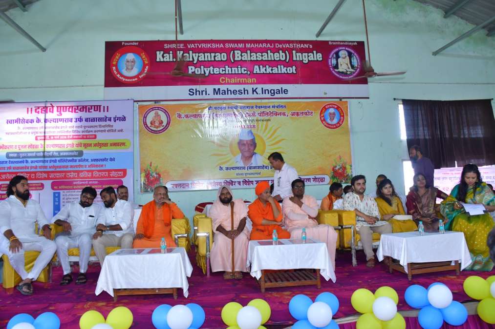 यावेळी श्री.म.नि.प्र.डॉ. अभिनव बसवलिंग महास्वामीजी बोलत होते. यावेळी कै.कल्याणराव इंगळे यांच्या १० व्या पुण्यस्मरणानिमीत्त इंगळे तंत्रनिकेतन महाविद्यालयात आयोजीत करण्यात आलेल्या आरोग्य शिबीर, ॲक्युप्रेशर शिबीर, रक्तदान शिबीर आदी उपक्रमांचे नगरसेवक महेश इंगळे यांच्या अधिपत्त्याखाली महास्वामीजींच्या दिव्य सान्निध्यात नगराध्यक्ष मिलन कल्याणशेट्टी यांच्या शुभहस्ते शुभारंभ करण्यात आले. ९३ रक्तदात्यांनी रक्तदान केले. यावेळी कै.कल्याणराव इंगळे तंत्रनिकेतन कडून डॉ.प्रचिती पुंडे यांना महास्वामीजींच्या हस्ते गुणीजन पुरस्काराने सन्मानीत करण्यात आले.