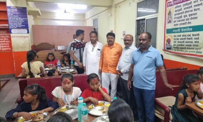 फोटो ओळ – तळेवाड जिल्हा परिषद मराठी प्राथमिक शाळेच्या विद्यार्थी विद्यार्थिनी स्वामी समर्थांच्या भोजन प्रसादाचा लाभ घेताना दिसत आहेत.
